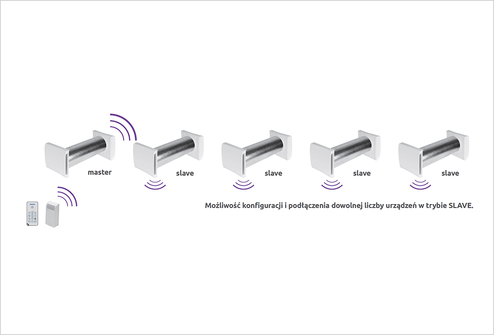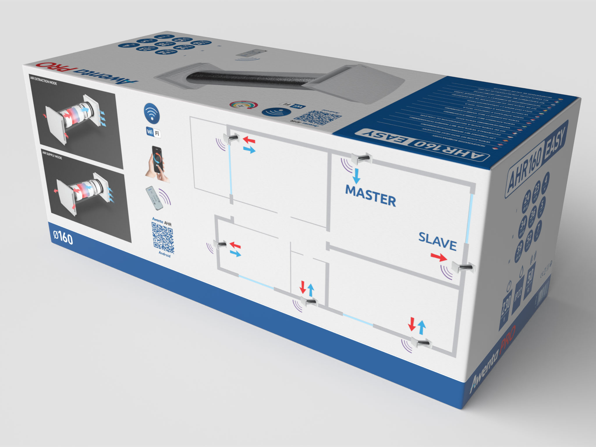AHRE160 został tak zaprojektowany, aby możliwe było stworzenie sieci urządzeń działających jednocześnie w wielu pomieszczeniach jednego domu. Im więcej jest ich zainstalowanych, tym więcej świeżego powietrza jest dostarczone do wnętrza i tym niższe są koszty ogrzewania w sezonach grzewczych.