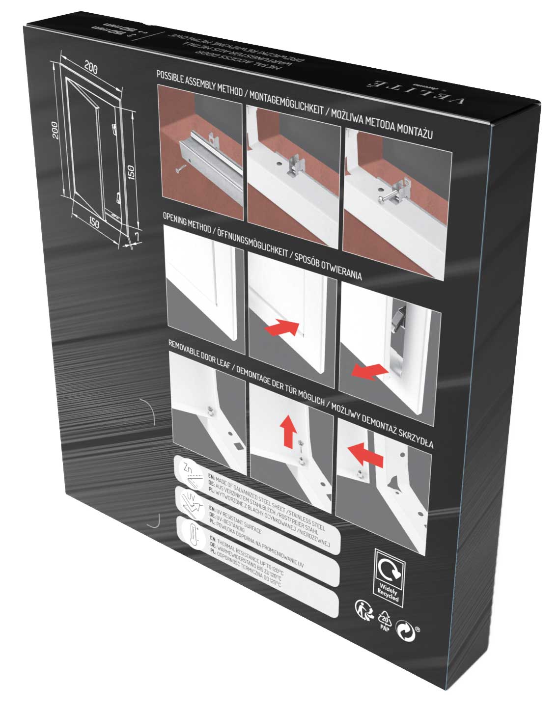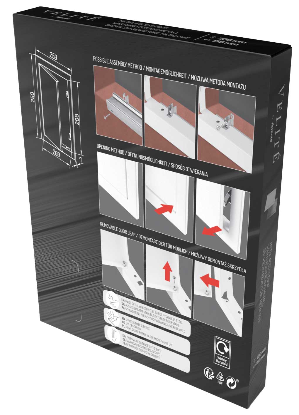 Drzwiczki rewizyjne DVRI to synonim wysokiej jakość dotąd niespotykanej w tego typu produktach. Użyte materiały i zastosowane rozwiązania techniczne świadczą o dojrzałości produktów tej serii. Łatwość montażu zapewnia dołączony do produktu zestaw do instalacji.