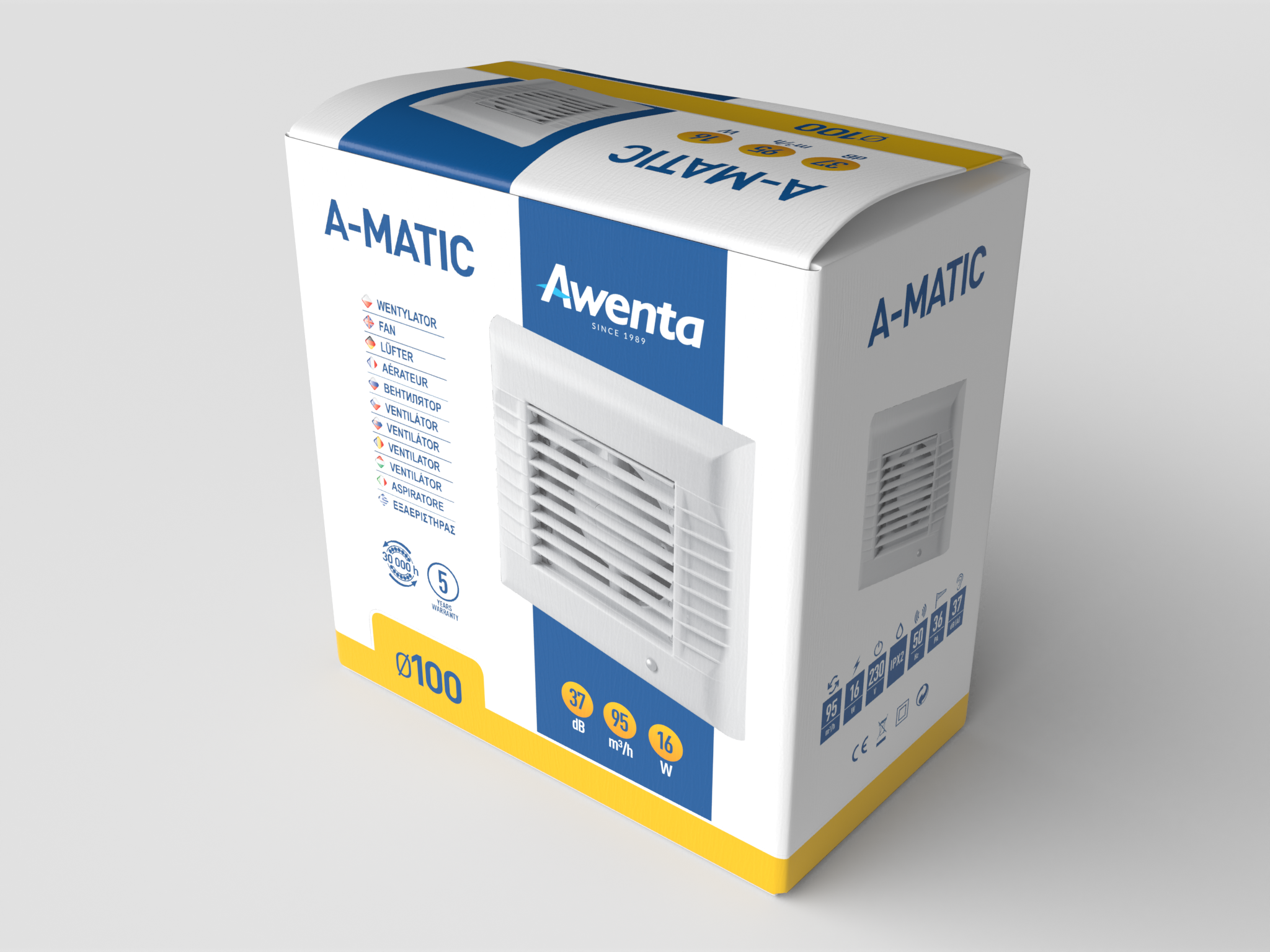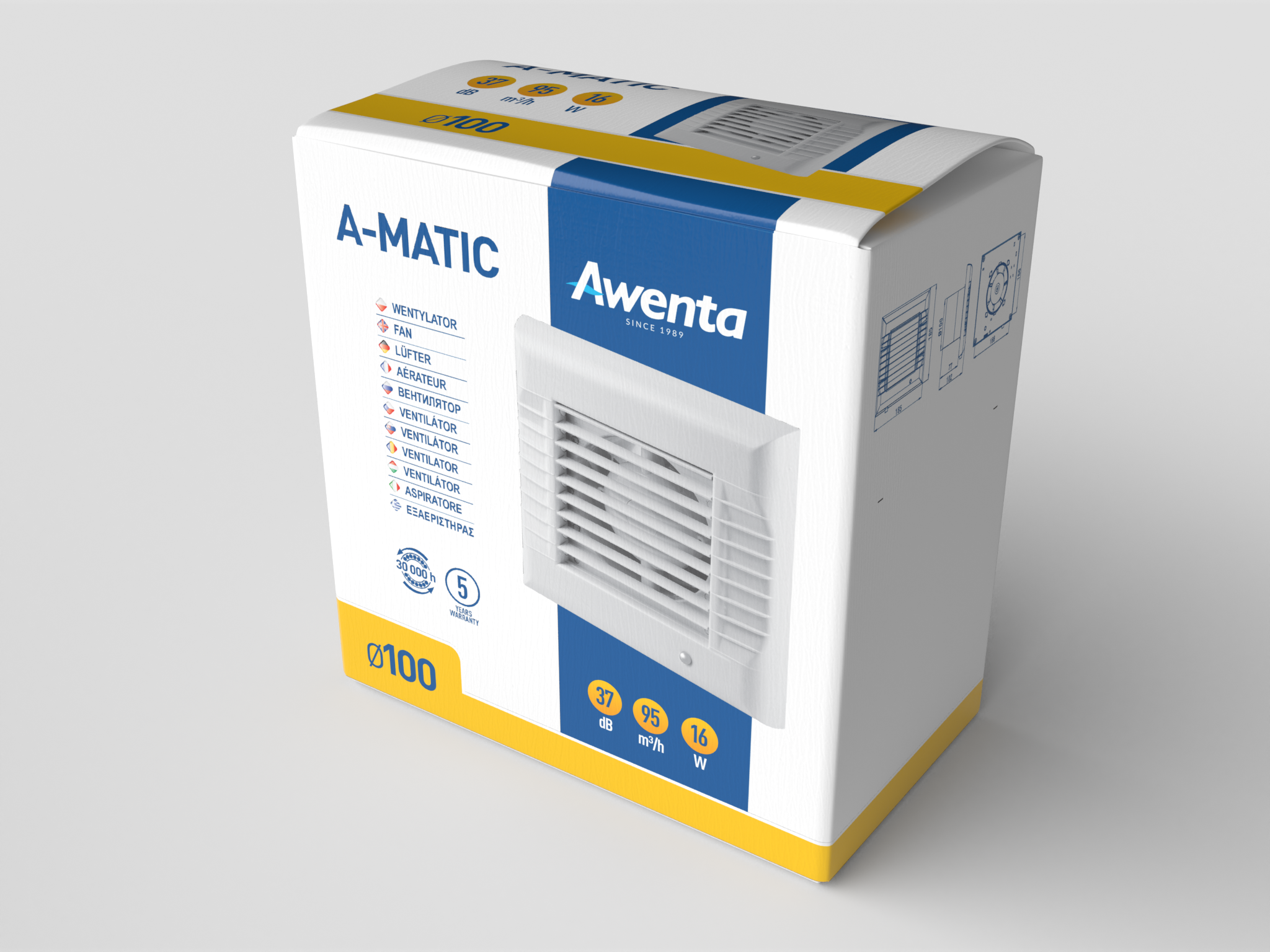 Wentylatory serii A-MATIC wyposażone są w automatyczną żaluzję, która otwiera się po uruchomieniu urządzenia. Wyłączenie wentylatora skutkuje zamknięciem żaluzji, co zapobiega wstecznemu przepływowi powietrza.