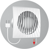 Wentylatory wyposazone w czujnik wilgoci i opóźnienie wyłączenia. Czujnik wilgotnosci powietrza wykrywa wilgoć w zakresie od 40% do 90% wilgotności względnej. Wentylator – w zależności od sposobu podłączenia do sieci – może być uruchamiany tylko automatycznie bądź również manualnie przez użytkownika.