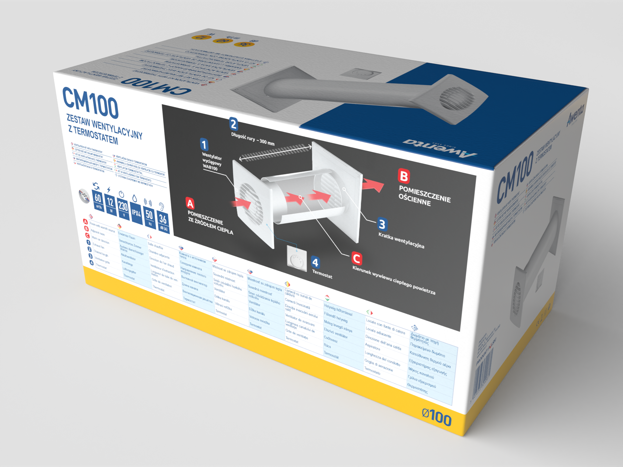 Aby urządzenie działało prawidłowo i zgodnie z przeznaczeniem, wentylator wyciągowy oraz termostat muszą być zainstalowane w pomieszczeniu, w którym mieści się wspomniane źródło ciepła. Za pomocą potencjometru na termostacie, ustawiana jest temperatura, przy której wentylator uruchomi się automatycznie i zasysając ciepłe powietrze, będzie je transferował do pomieszczenia sąsiedniego. Wentylator wyłączy się po obniżeniu temperatury w pomieszczeniu za źródłem ciepła. Kanał wentylacyjny musi znajdować się w ścianie oddzielającej obydwa pomieszczenia (długość kanału jest optymalna dla ściany grubości 300 mm), natomiast kratka wentylacyjna jest zakończeniem kanału po stronie przeciwległej do wentylatora.