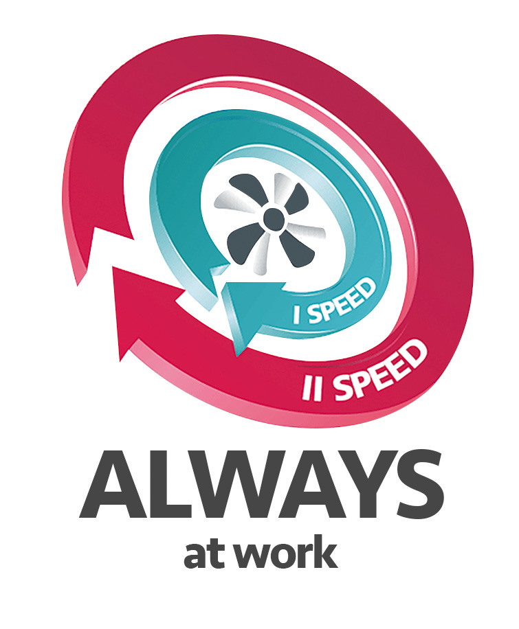 Seria urządzeń HRV posiada możliwość przełączania pomiędzy dwoma prędkościami pracy. W zalezności od opcji wyposażenia zmiana prędkości następuje za pomocą pilota (HRV100P, HRV125P) lub włącznika pociąganego zainstalowanego w urzadzeniu (HRV100, HRV125).