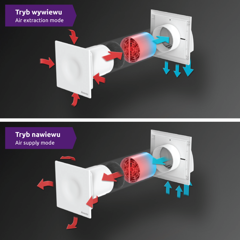 Rekuperator HRV uruchamiany jest zawsze w trybie wywiewu. Powietrze wydostające się z pomieszczenia po jego włączeniu, oddaje energię cieplną aluminiowemu wymiennikowi. Po sześćdziesięciu sekundach wentylator automatycznie przełącza się w tryb nawiewu.